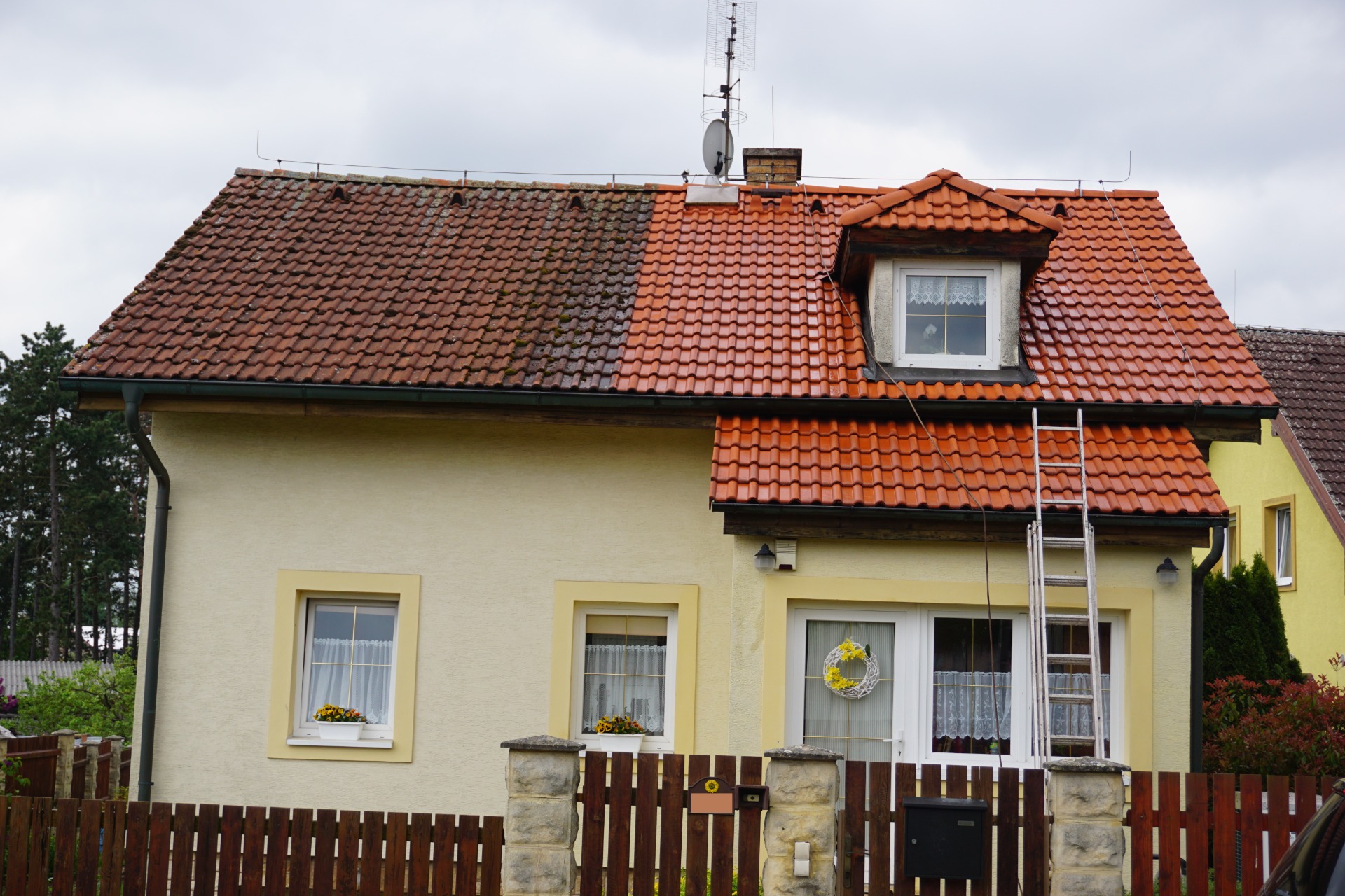 Z Vaší střechy odstraním veškerý mech, lišejníky a jiné nečistoty a vrátím jí její původní vzhled a vlastnosti. Následná impregnace ochrání střechu před znečištěním pod dobu několika let.