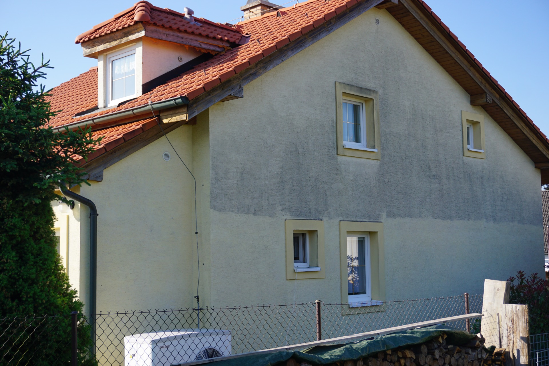 Z Vaší fasády odstraním za pomoci chemie a nízkého tlaku veškerý prach, řasy, plísně, které fasádě kazí vzhled a zkracují její životnost.