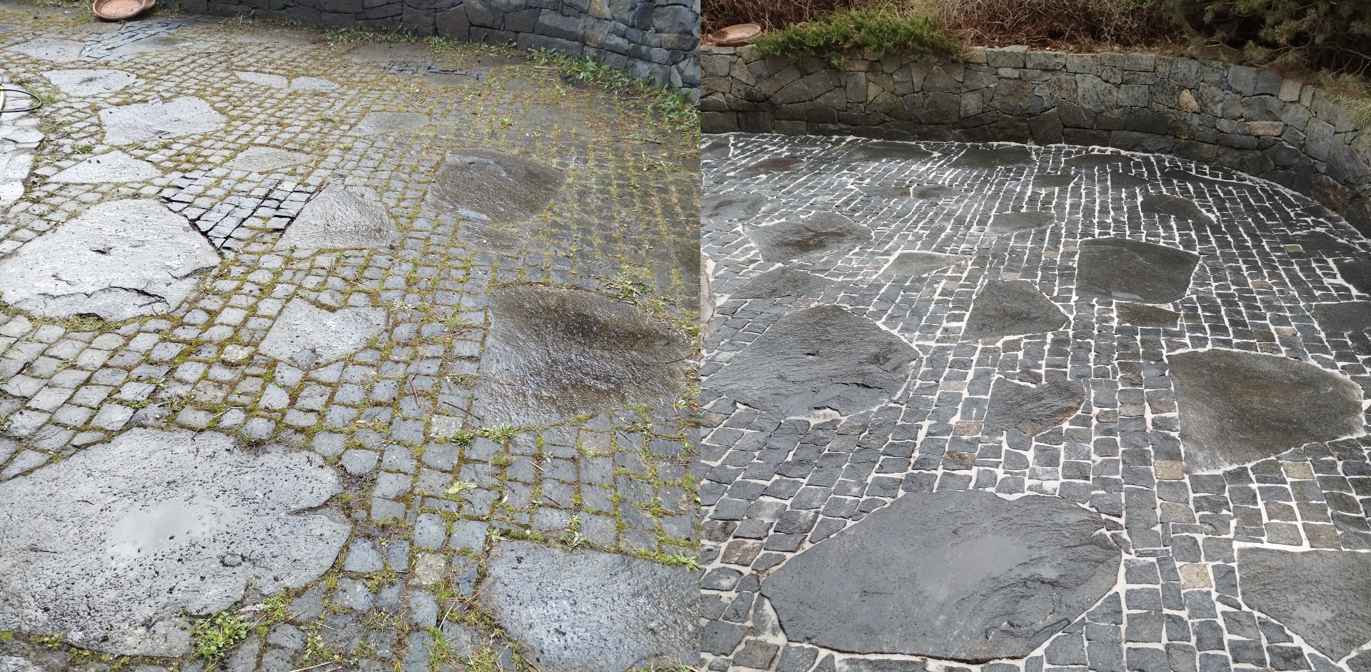 Mytí zámkových dlažeb, příjezdových cest, schodiště, terasy, chodníků, plotových sloupků atd.